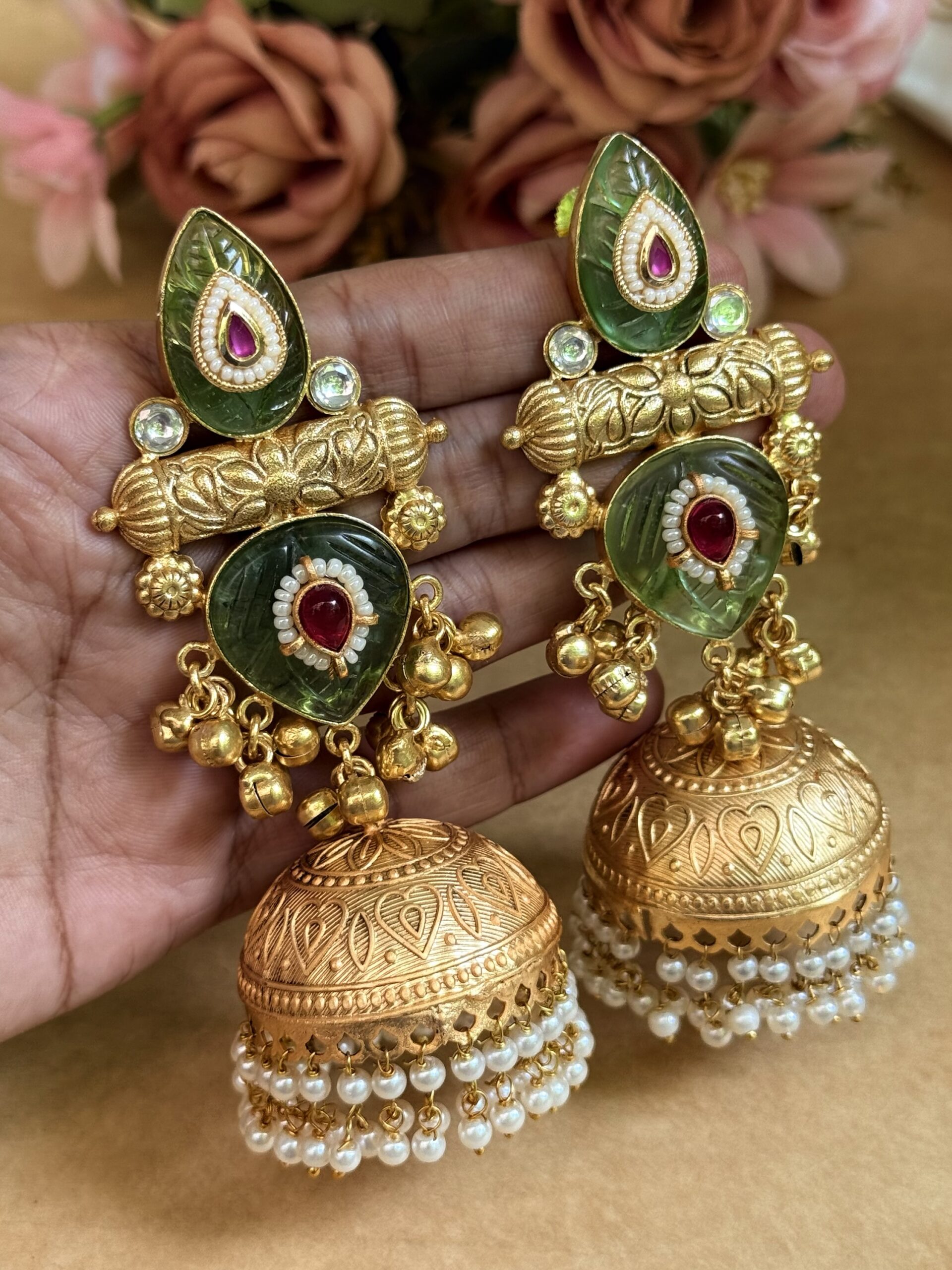 A-ROCKFELLER EMERALD KUNDAN JHUMKAS