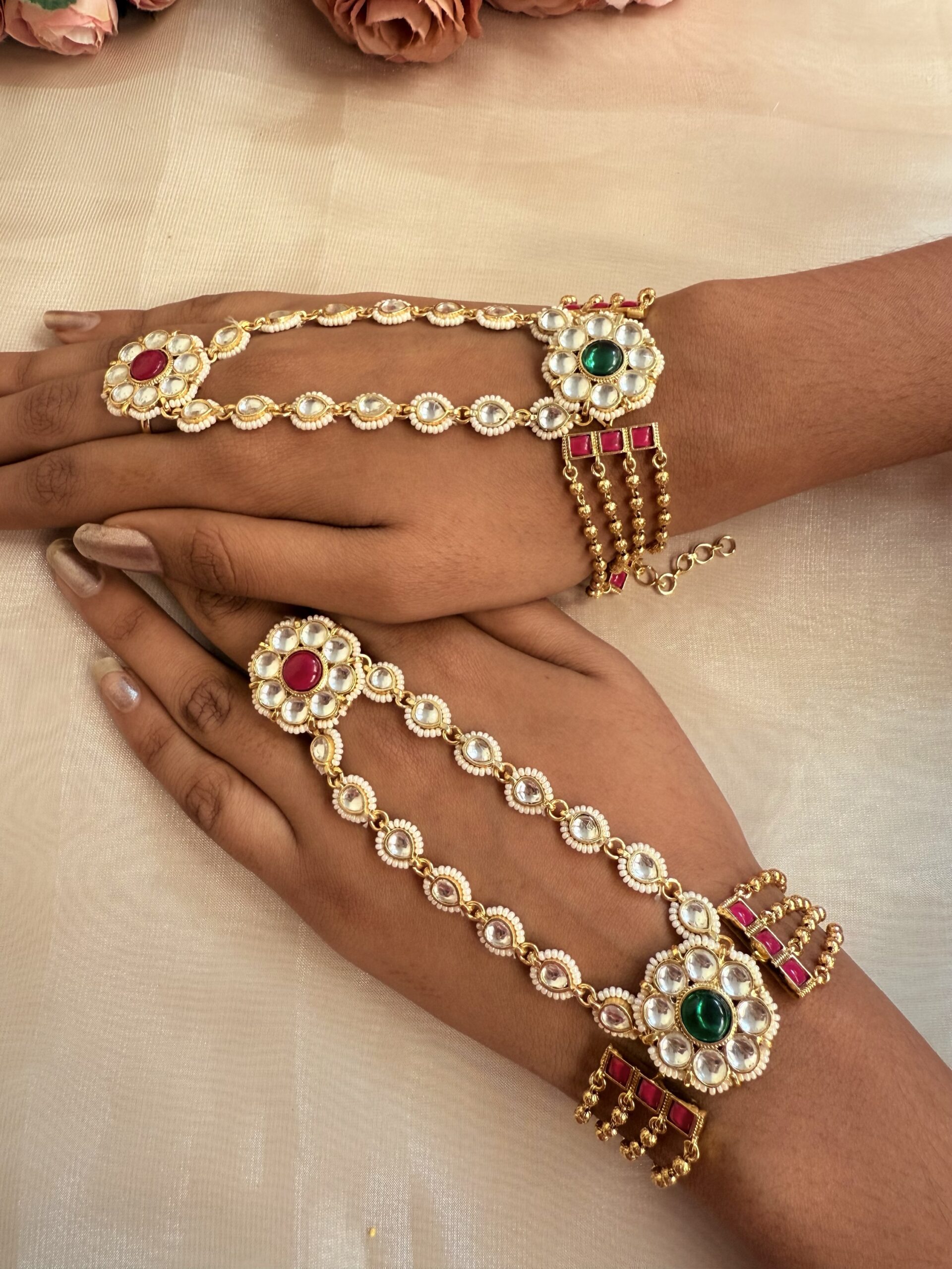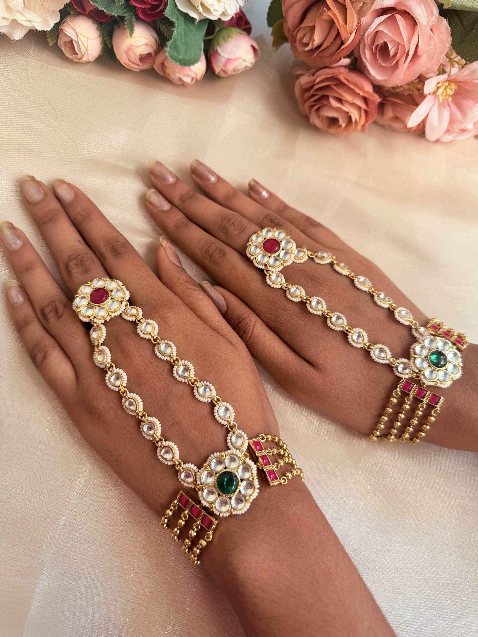 Pachi Kundan hatha full pair